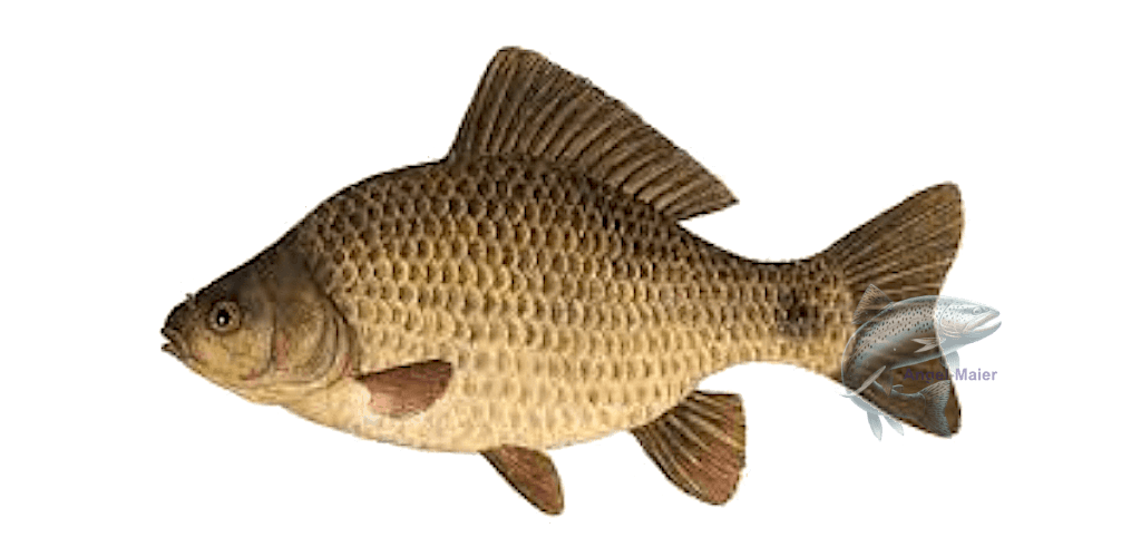 • Markant für eine „echte“ Karausche ist der dunkle Fleck an der Schwanzwurzel.