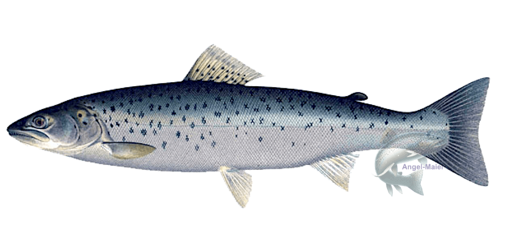 - Die Seeforelle unterscheidet man eindeutig zur Bachforelle durch die fehlenden roten Punkte.