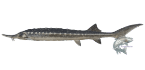 | Stör | 4 | runde Barteln an der Unterseite des Mauls, ohne Fransen | ![]() |
