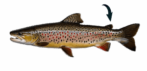 | Regenbogenforelle | Rückenflosse, Fettflosse & Schwanzflosse mit Bepunktung | ![]() |