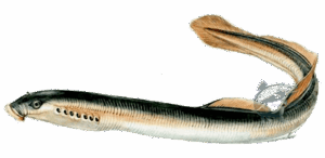 | Neunaugen | Rückenflosse, Schwanzflosse und Afterflosse bilden einen geschlossenen Flossensaum | ![]() |